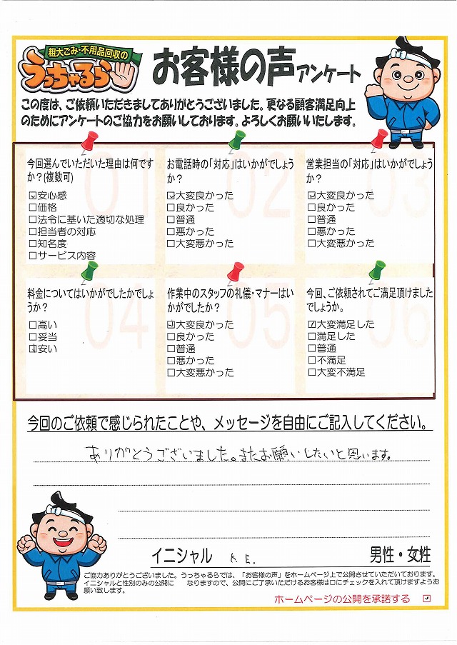 またお困りになりましたら、是非うっちゃるらにお任せ下さい。